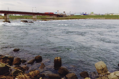 ①♦観測日時:2015年4月17日 6:00 ♦観測場所:鳥取市千代川河口より3Km ♦流 量:毎秒80㎡ ♦川 幅:200m
